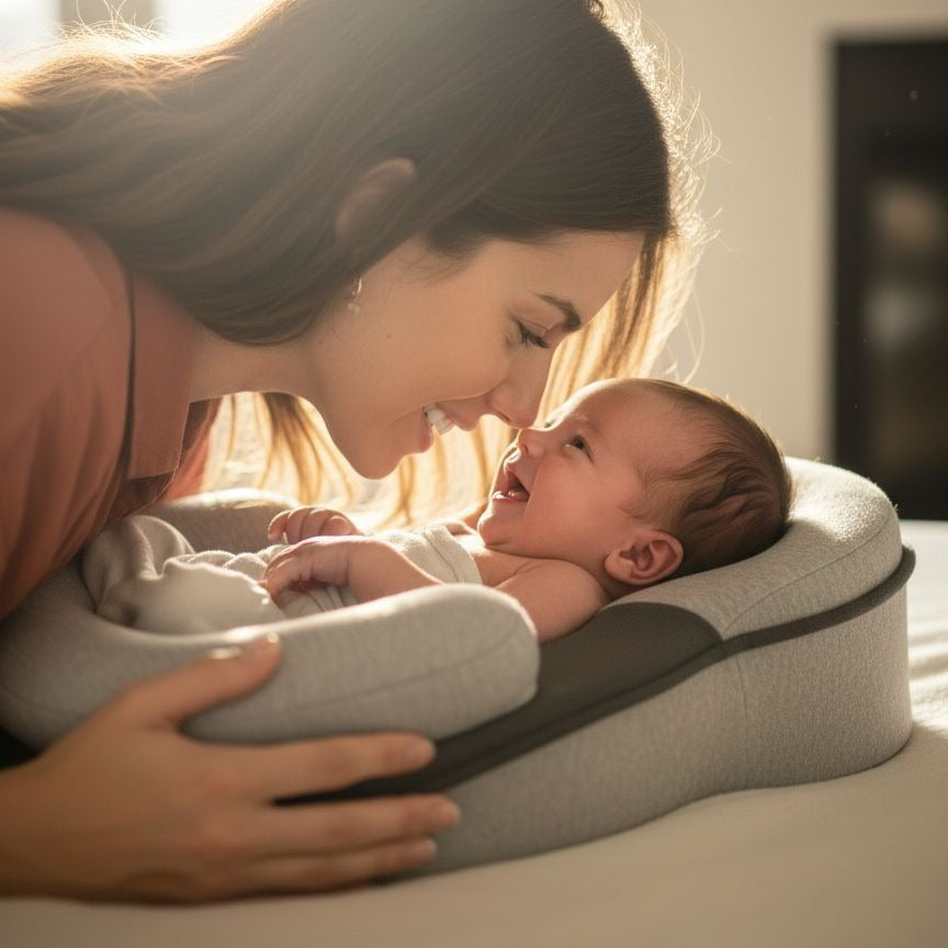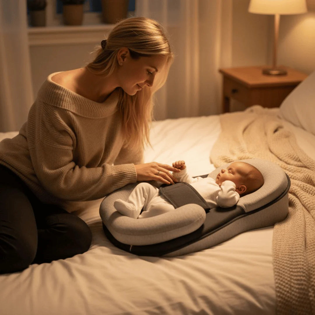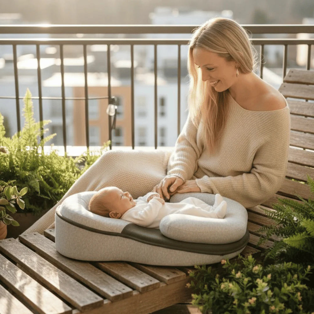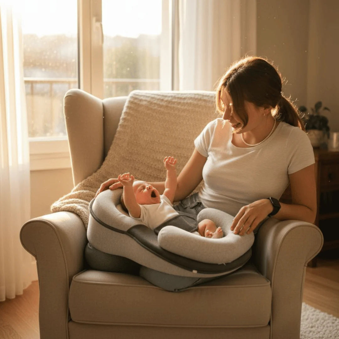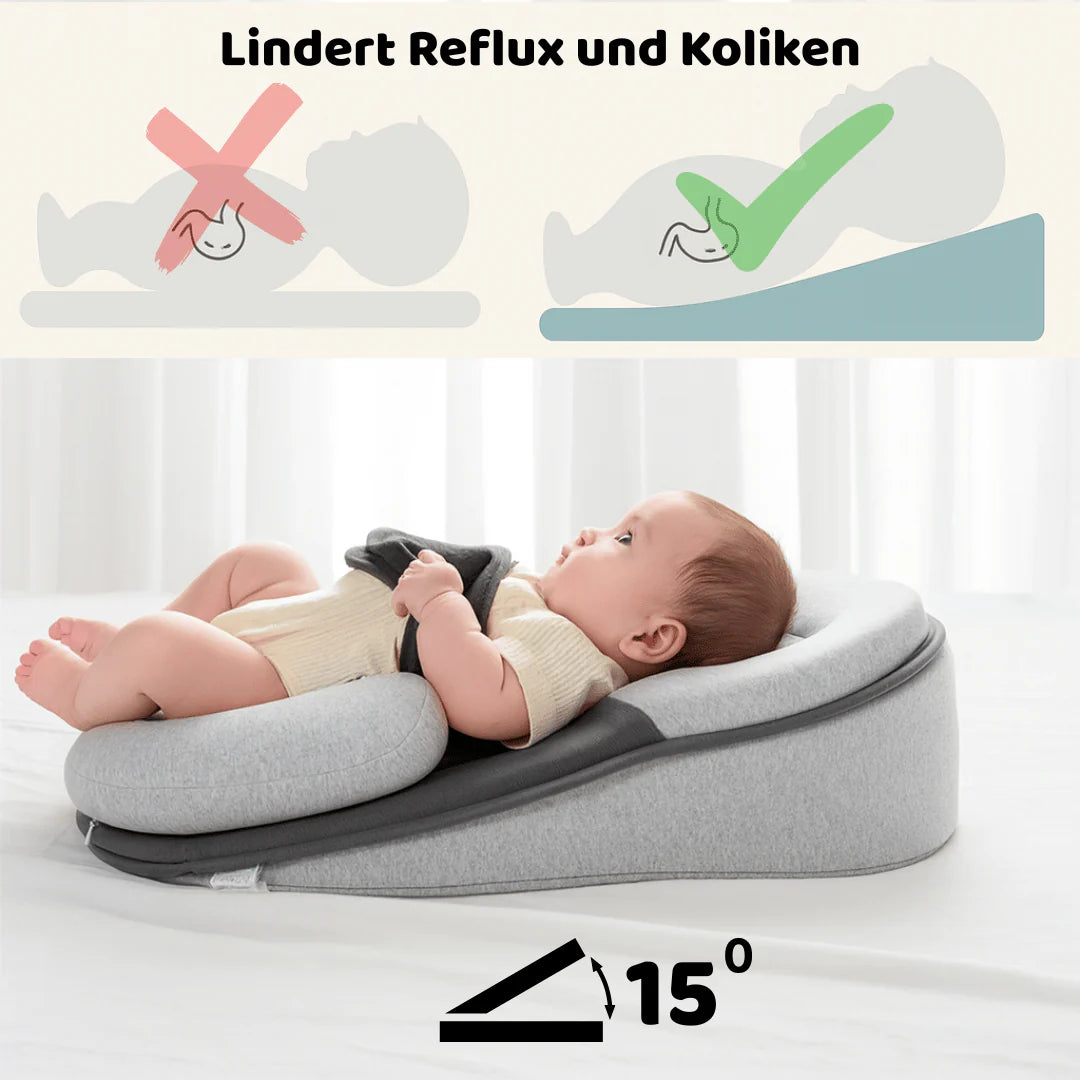 Durch die durchdachte Form wird der Kopf deines Babys optimal gestützt, das Risiko von Reflux und Schädelverformung reduziert und ein Gefühl von Geborgenheit geschaffen – fast wie in Mamas Armen.