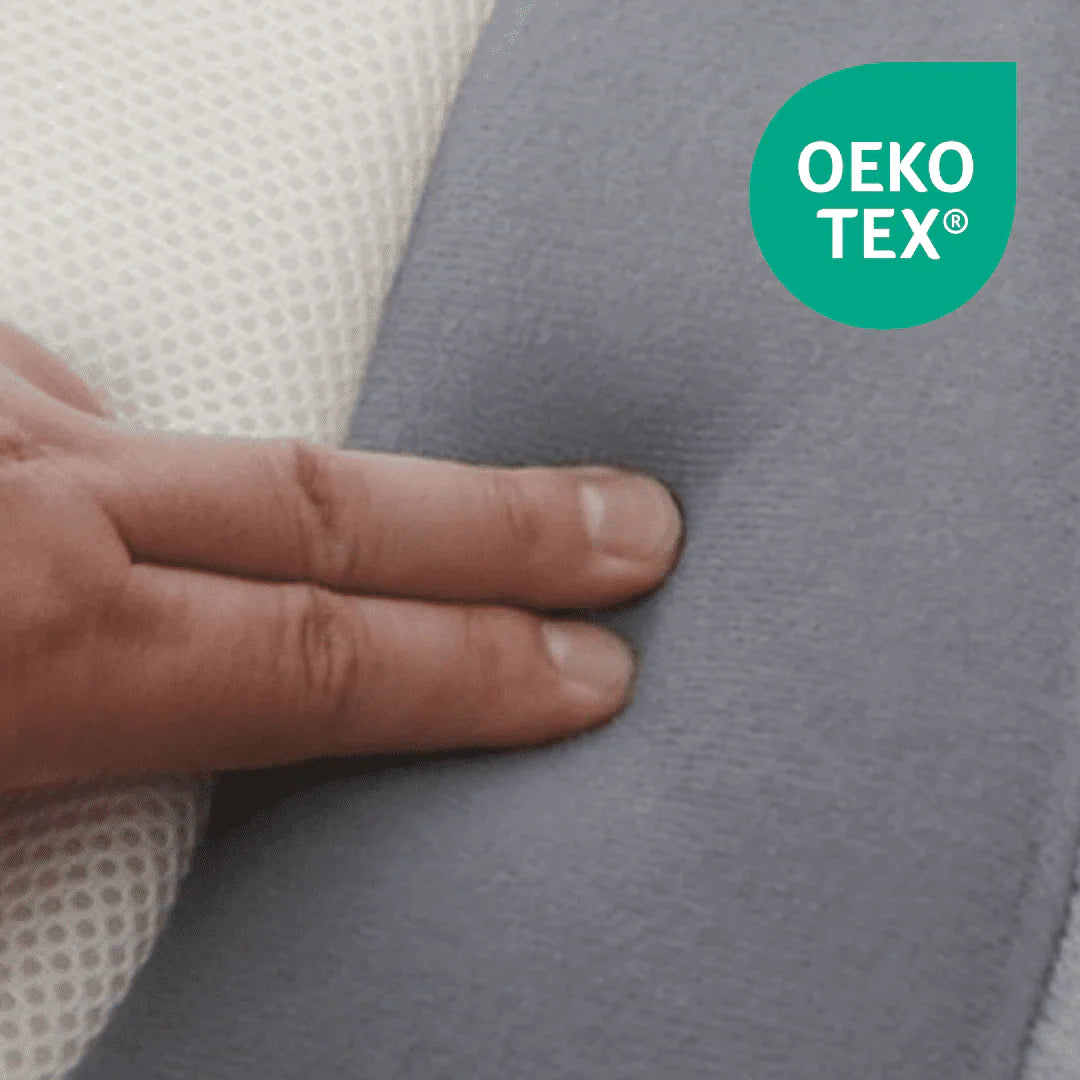 Unser Necfy-Babybett aus weichem Memory-Schaum passt sich sanft der Körperform deines Babys an. Der atmungsaktive Bio-Baumwollbezug sorgt für ein angenehmes, temperaturausgleichendes Schlafklima.