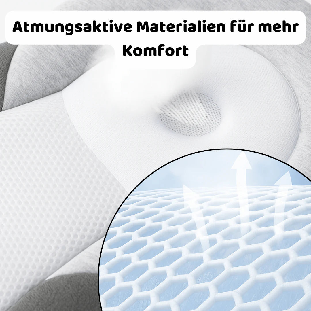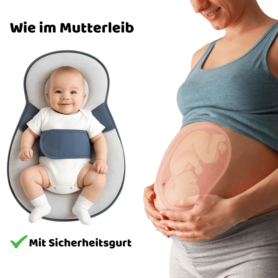 Die Kuschelwolke schenkt deinem Baby das Gefühl von Sicherheit und Nähe, wie es den Mutterleib kennt. Umhüllt und sanft gestützt, fühlt es sich jederzeit geschützt und geborgen.