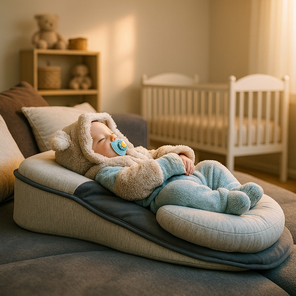 die weiterentwickelte Schlaflösung mit sanfter 15°-Schräge, Sicherheitsgurt und extra weichen, atmungsaktiven Materialien.